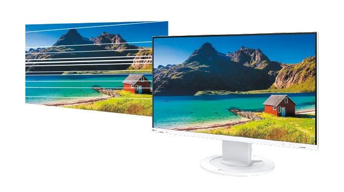 無閃爍的圖像顯示由於亮度控制的LED背光源方式,有少數人認為這是造成螢幕閃爍使眼睛疲勞的主要問題。FlexScan EV系列採用混合解決方案來調整亮度。