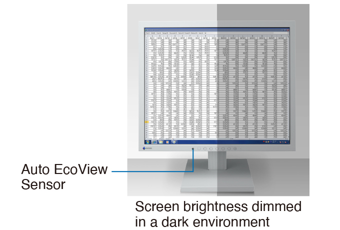 自動亮度控制為了防止眼睛疲勞,名為 Auto EcoView 的亮度感應器可以偵測全天發生的環境亮度變化,並自動將螢幕調整到理想的亮度水平。